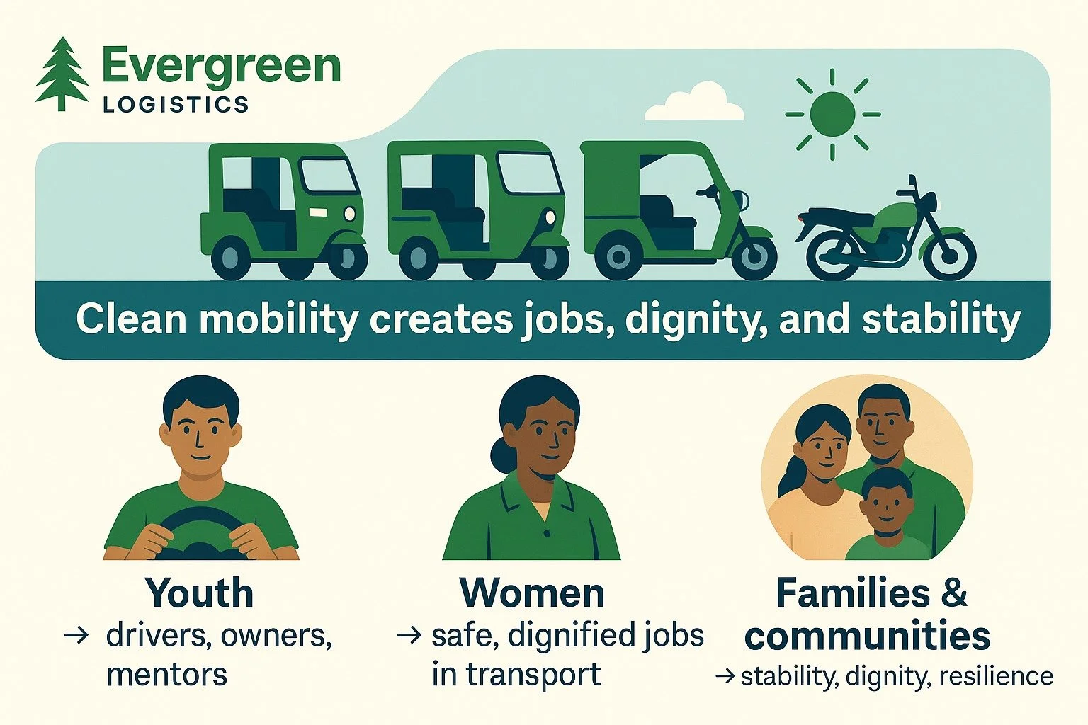 Zero-emission electric tricycles for sustainable urban transportation, reducing carbon footprint and improving air quality in African cities.